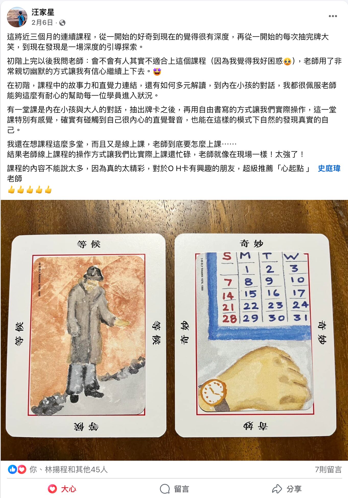 這將近三個月的連續課程,從一開始的好奇到現在的覺得很有深度,再從一開始的每次抽完牌大笑,到現在發現是一場深度的引導探索。⁣